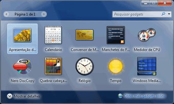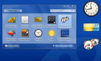 - Widgets: Esses eram anteriormente chamados de Gadgets em versões anteriores do Windows. Eles rodam na barra lateral da sua área de trabalho e fornecem informações úteis sobre notícias, clima, moeda, hora, etc. Você pode baixar mais widgets para se adequar às suas preferências.